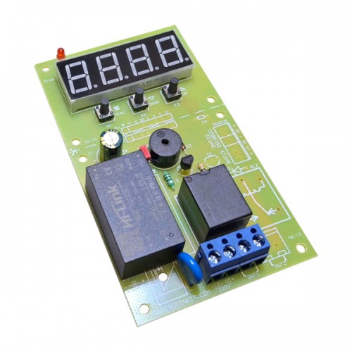 این برد یک تایمر دوزمانه می باشد که بصورت تکرار شونده عمل می کند. یعنی می توان زمان روشن بودن از 1 تا 9999 ثانیه یا دقیقه و زمان خاموش بودن از 1 تا 9999 ثانیه یا دقیقه را تنظیم کرد و تایمر در زمان تنظیم شده به طور مرتب روشن و خاموش می شود.